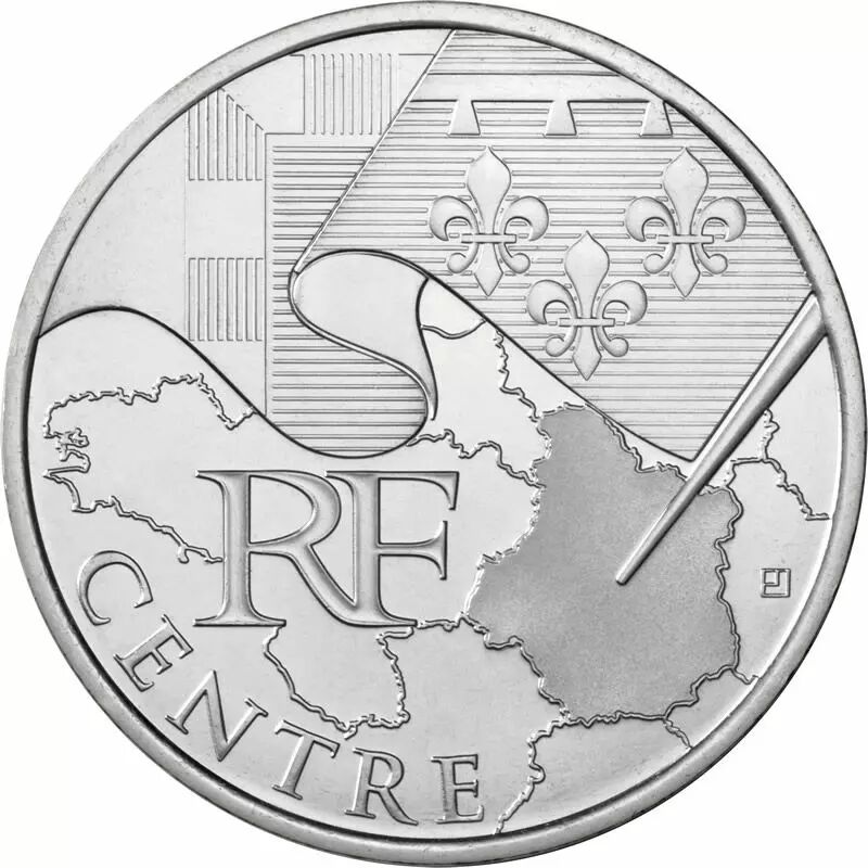 Sur la face un dessin correspondant à chaque région apparaît sur un fond stylisé. En pourtour dans le bas de la pièce figure le nom de chaque région. Une reprise graphique du drapeau régional couronne l’ensemble sur la partie haute de la pièce. Le revers commun dévoile au milieu la valeur faciale de 10 € entourée de 2 branches l’une de chêne l’autre de laurier évoquant le sigle de l’Euro. L’inscription « Liberté Egalité Fraternité » se place sur le pourtour de la pièce et l’ensemble du motif se voit encadré par un assemblage de traits représentant l’hexagone.