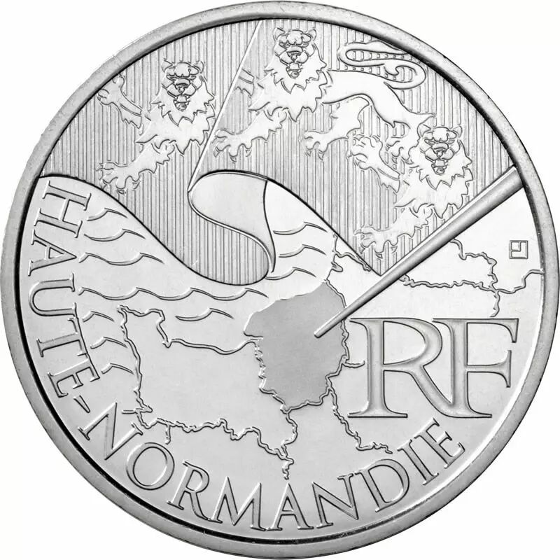 Sur la face un dessin correspondant à chaque région apparaît sur un fond stylisé. En pourtour dans le bas de la pièce figure le nom de chaque région. Une reprise graphique du drapeau régional couronne l’ensemble sur la partie haute de la pièce. Le revers commun dévoile au milieu la valeur faciale de 10 € entourée de 2 branches l’une de chêne l’autre de laurier évoquant le sigle de l’Euro. L’inscription « Liberté Egalité Fraternité » se place sur le pourtour de la pièce et l’ensemble du motif se voit encadré par un assemblage de traits représentant l’hexagone.