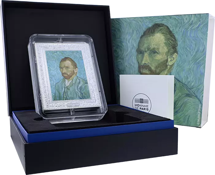 La face de la monnaie de 250 Argent reprend le célèbre autoportrait dans son ensemble. Pour créer l’illusion de l’œuvre elle est colorisée et le dessin du vrai cadre entourant le portrait de Van Gogh est représenté. Le nom du tableau ainsi que celui de l’artiste et le millésime de cette monnaie sont inscrits sur le cartel présent également sur l’œuvre exposée au Musée d’Orsay.