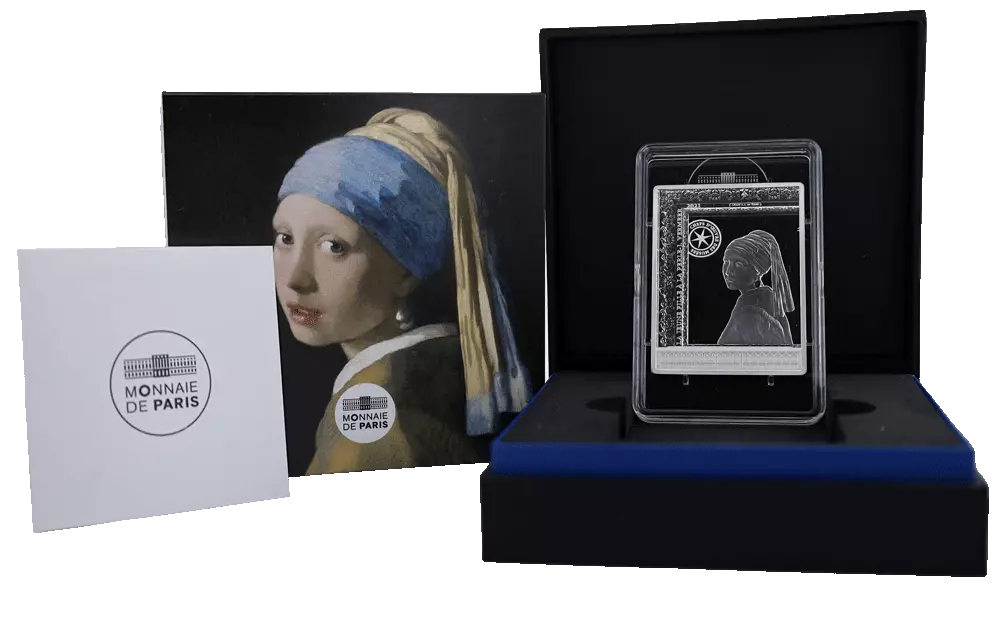 La très grande richesse de l?art pictural en France depuis plusieurs siècles fut l?occasion pour la Monnaie de Paris de débuter une nouvelle série qui rend hommage aux plus grands des chefs d??uvre présents dans nos musées. Les courants et les influences ? Renaissance Baroque Impressionnisme? ? sont célébrés. Chaque année plusieurs ?uvre sont mises à l?honneur. En 2021 la collection s'ouvre avec "La Jeune Fille à la Perle" de Vermeer et une nouvelle coupure de 100 grammes argent.