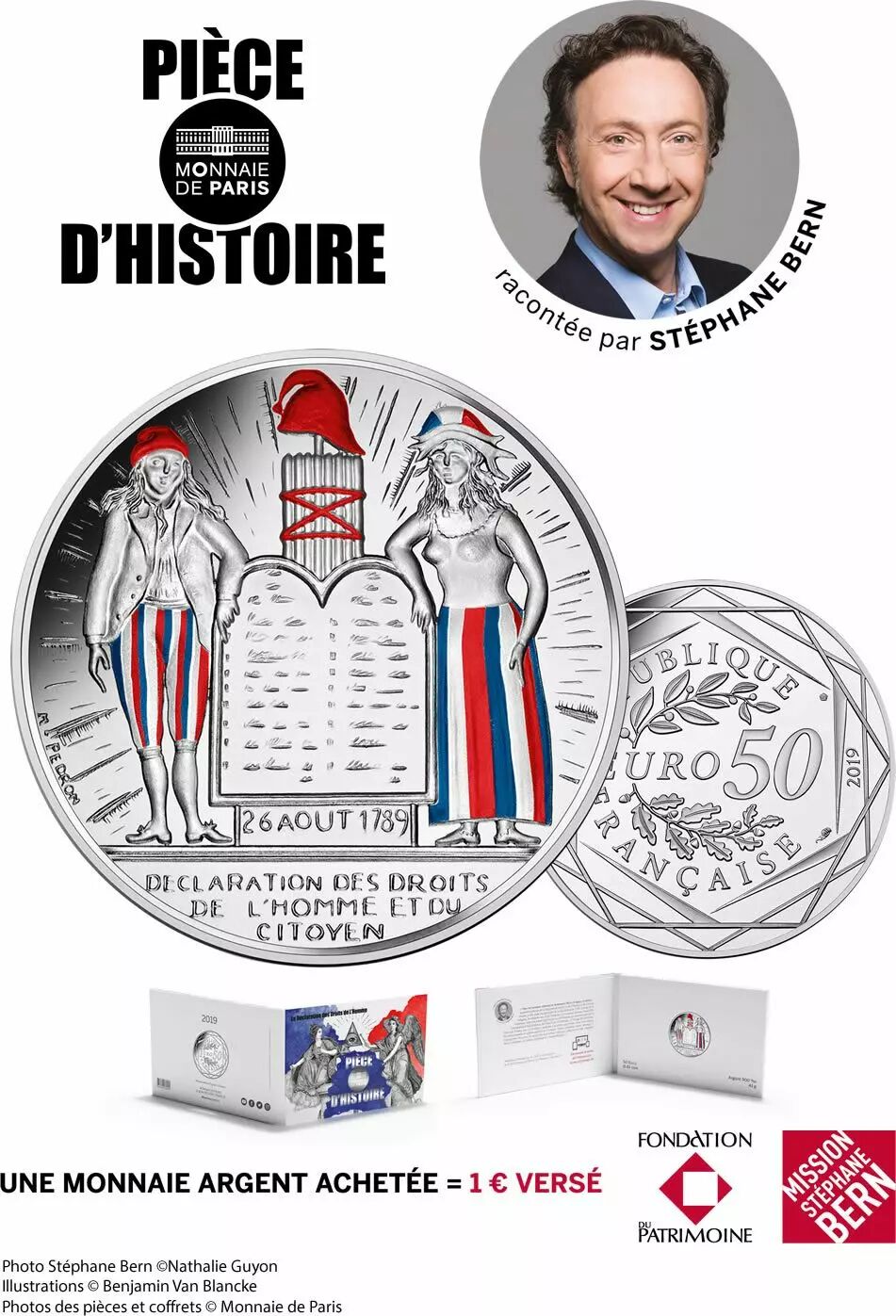 La Monnaie de Paris, en tant que plus vieille entreprise au monde et dernière usine de Paris, est évidemment sensible aux problématiques liées au Patrimoine. C’est donc tout naturellement que la Monnaie de Paris s’est associée à Stéphane Bern pour la réalisation de cette collection qui valorise l’histoire de la France. La Monnaie de Paris soutient la Fondation du Patrimoine à travers la collection Pièce d’Histoire. 1€ sera versé pour chaque monnaie argent achetée afin de contribuer au financement des projets de sauvegarde et de mise en valeur de la Mission Bern.
