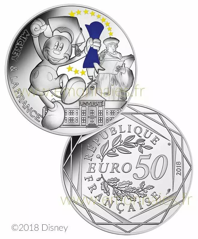 En 2018 à l'occasion des 90 ans du personnage emblématique de Walt Disney la Monnaie de Paris édite une collection de monnaies à Valeur Faciale présentant Mickey et la France.