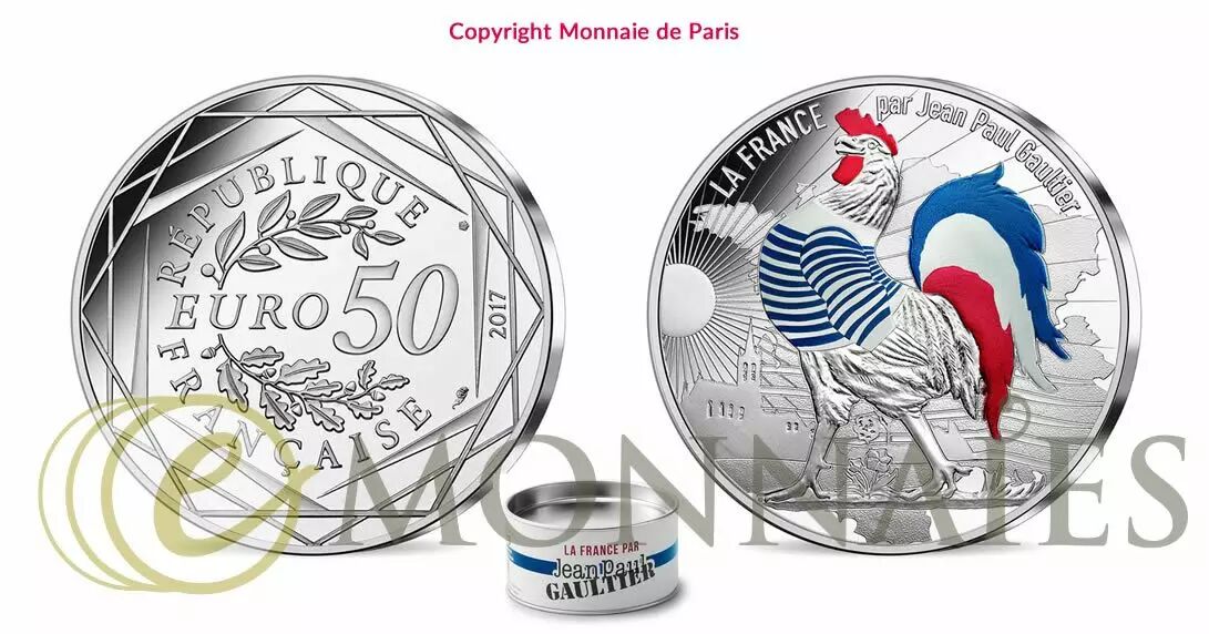 Accueil > Archivage > archivage-Archivage > France - Monnaie de Paris 50 Euros Argent COULEUR France 2017 - Coq Marinière La France par JP Gaultier (Vague 1)