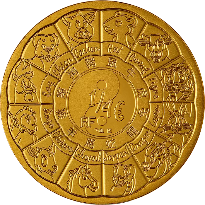 Sur le revers on retrouve l?ensemble des animaux du zodiaque chinois dessinés de manière enfantine repartis autour du symbole du Ying et du Yang. A partir de 2018 jusqu?en 2029 se compose un cycle complet du zodiaque chinois. Chacune de ces douze années met donc en avant un animal issu de ce calendrier. La valeur faciale est visible en au centre de la coupure et la mention « RF ».