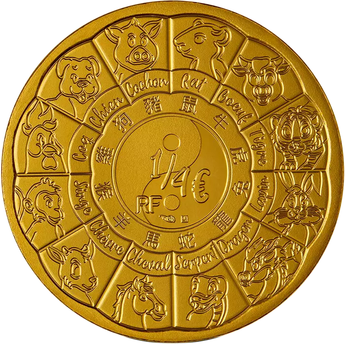 Entouré de fleur de prunier, symbole très utilisé dans l?histoire et dans l?art chinois, ainsi que de lanternes, le serpent est représenté de façon joyeuse et enfantine. L?inscription « Année du Serpent» suivie du millésime 2025 apparait au centre de la monnaie. L?idéogramme du serpent apparait en-dessous. Sur le revers, on retrouve l?ensemble des animaux du zodiaque chinois dessinés de manière enfantine repartis autour du symbole du Ying et du Yang. A partir de 2018 jusqu?en 2029 se compose un cycle complet du zodiaque chinois. Chacune de ces douze années met donc en avant un animal issu de ce calendrier. La valeur faciale est visible en au centre de la coupure et la mention « RF ».
