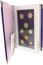 Contient 8 pièces de la 1 centime à la 2 euros. Etuis carton abimé, inclus le certificat