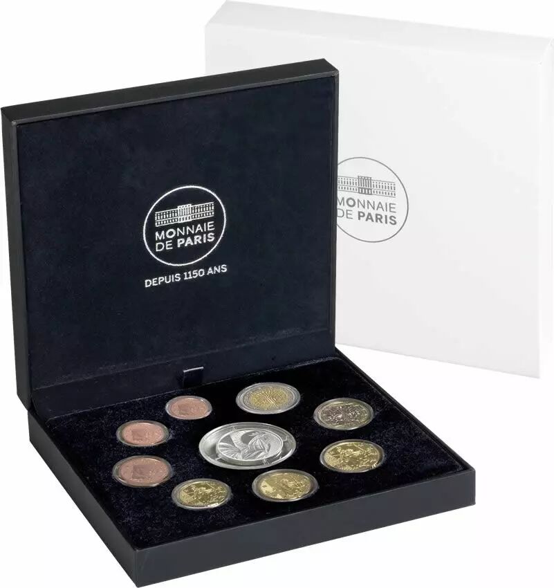 Contient 8 pièces de la 1 centime à la 2 euros + une pièce de 10 € Argent COQ au millésime 2015.