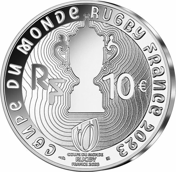 Le revers présente la Coupe Webb Ellis que le vainqueur de la coupe du monde aura la joie de brandir. A gauche de la coupe figure l'inscription RF, et à droite, la valeur faciale. La mention « Coupe du Monde de Rugby France 2023 » apparaît tout autour du décor. Sous la coupe, on retrouve le logo de la coupe du monde de rugby France 2023