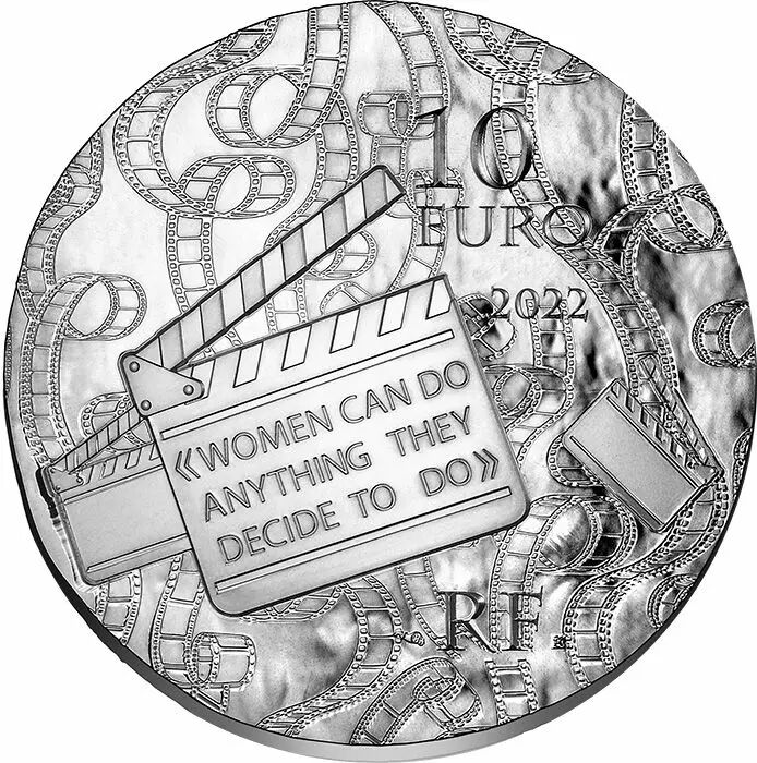 Le revers représente plusieurs éléments qui font écho à sa vie d’actrice : les bobines de films les claps de cinéma ainsi qu’ une phrase emblématique que Grace Kelly a prononcée et qui témoigne de son avant-gardisme « Women can do anything they decide to do ». La mention « RF » est présente en bas tandis que la valeur faciale et le millésime sont visibles en haut à droite du dessin.