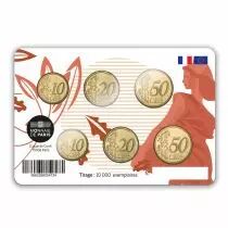 Ce blister regroupe les six monnaies de 10, 20 et 50 centimes millésimés 2023 et 2024, frappées en qualité Brillant Universel (BU). Historiquement dédiés à la figure de la semeuse, les trois monnaies millésimées 2024 mettent à l?honneur trois femmes d?exception ayant fortement contribué à l?élévation de la France ainsi qu?à son rayonnement à l?international. La figure intemporelle de la semeuse imaginée par le graveur Oscar Roty figure toujours sur les trois coupures, comme un clin d?oeil aux dessins des euros qui nous accompagnent depuis plus de 20 ans.