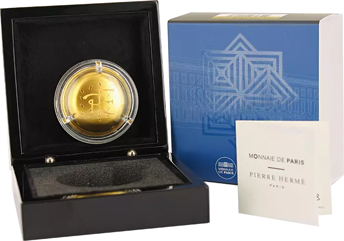 Des monnaies en forme de macaron ont été développées pour célébrer cette collaboration. Prouesse technique la forme ainsi que les reliefs de ces macarons reprennent les codes esthétiques de la Maison Pierre Hermé Paris grâce au détail de la gravure et au volume de la pièce.