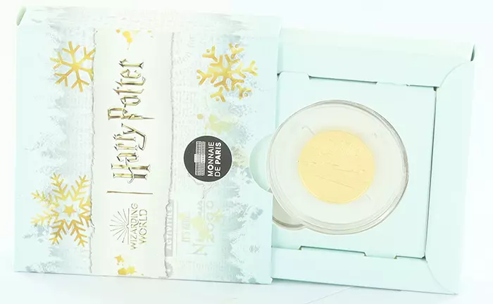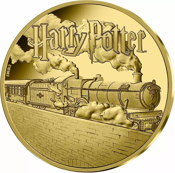 Cette monnaie en or pur représente le Poudlard Express train reliant la gare de King?s cross a Londres a l?établissement magique de Poudlard collège pour sorcières et sorciers. Pour emprunter cette ligne les jeunes sorciers doivent se rendre sur la voie 9 ¾ en traversant un portail magique caché des yeux des moldus
