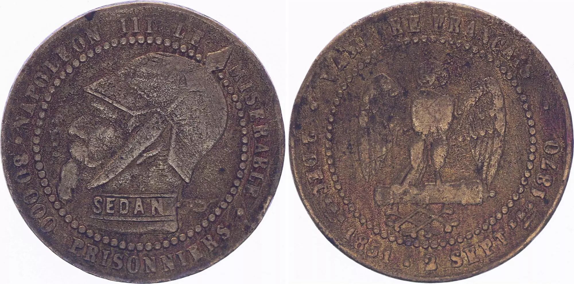 Pièce France Monnaie satirique Napoléon III le misérable - Sedan 1870 - 3e ex.