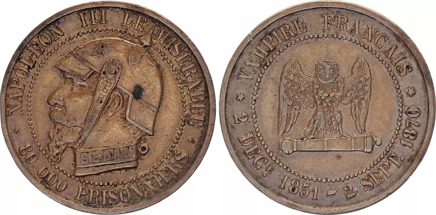 Pièce France Monnaie satirique Napoléon III - Module de 5 cts - Sedan 1870