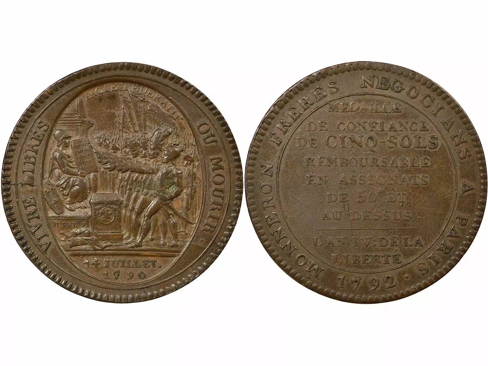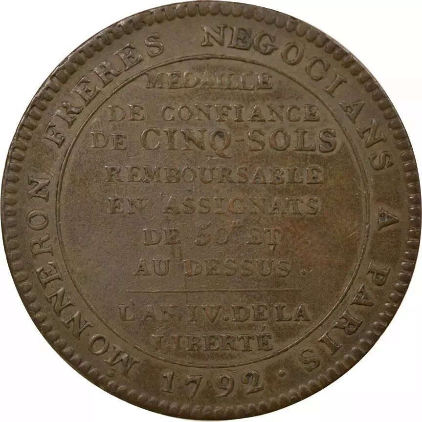 Pièce France Monneron - Cinq Sols Au Serment - 1792, An IV Birmingham