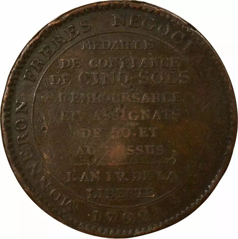 Home > > France Monneron - Cinq Sols Au Serment, "Departemens" - 1792, An IV Birmingham