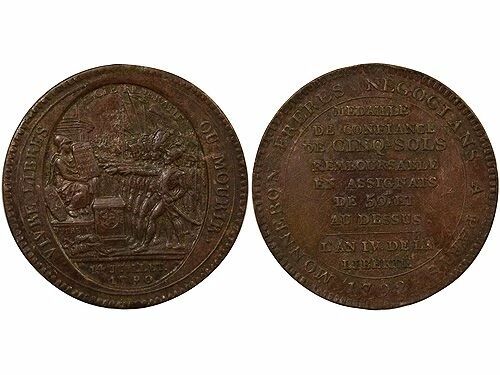 Coin France Monneron - Cinq Sols to the Oath - 1792, Year IV Birmingham