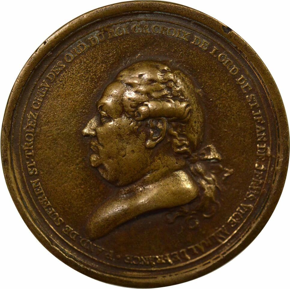 Avers : . P . AND . DE SUFFREN ST . TROPEZ CHEV DES ORD . DU ROI GR CROIX DE LORD . DE ST JEAN DE JERUS . VICE AMIRAL DE FRANCE