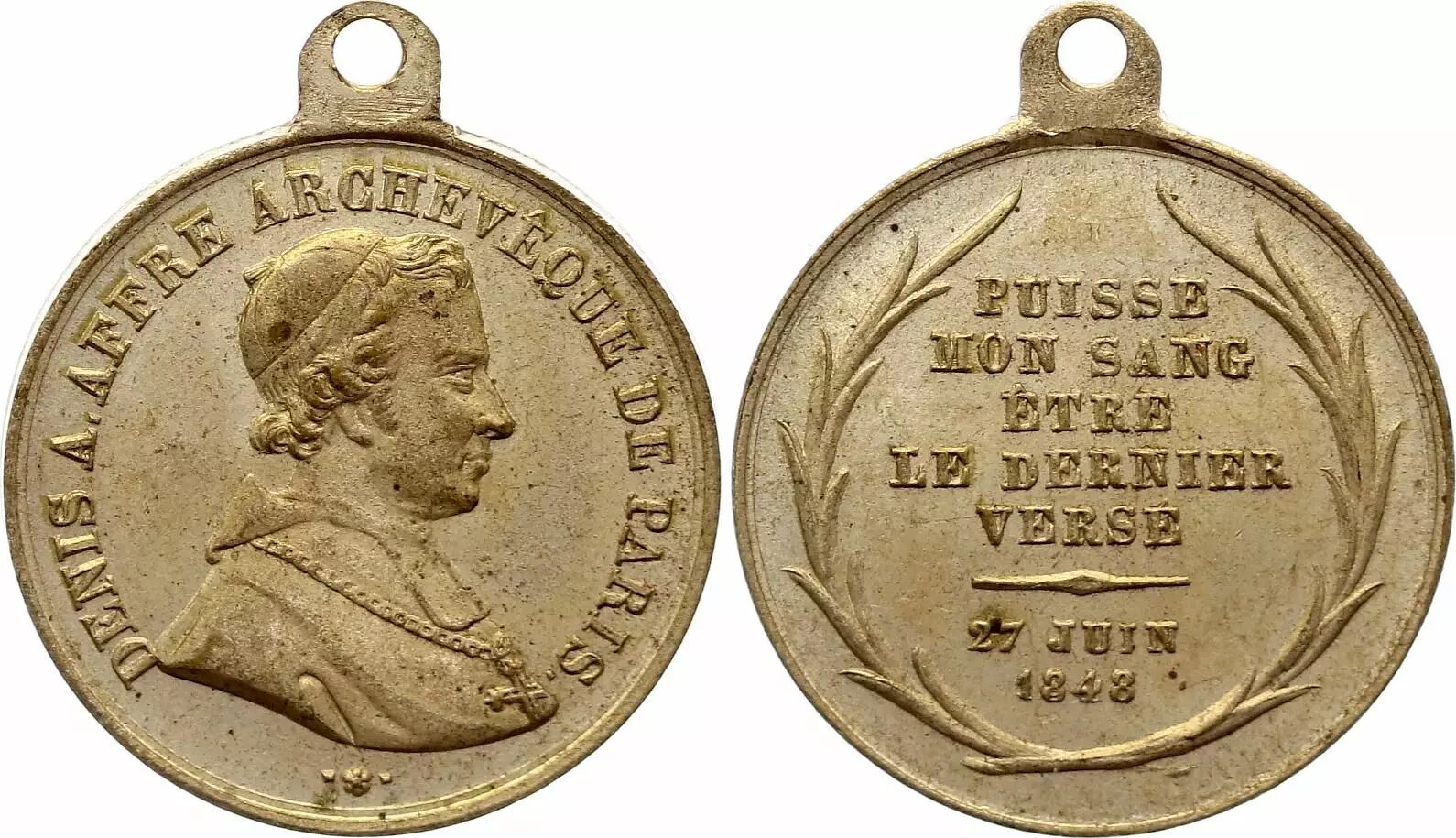 Accueil > Monnaies françaises (470 à 2002) > Médailles (depuis 1500) > France Mort de l'Archevêque Affre de Paris - Puisse mon sang être le dernier versé - 1848