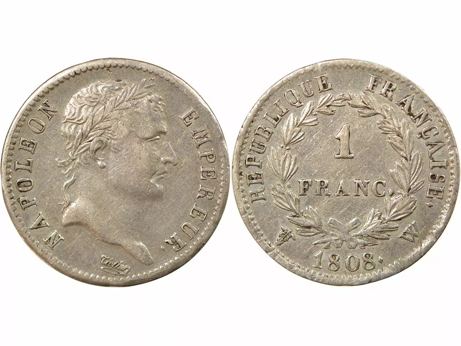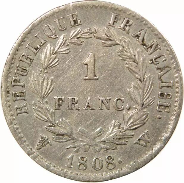 Coin France Napoleon I - 1 Silver Franc, Laureate head, Republic - 1808 W Lille