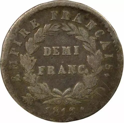 Pièce France Napoléon I - 1/2 Franc Argent, Empire - 1812 D Lyon