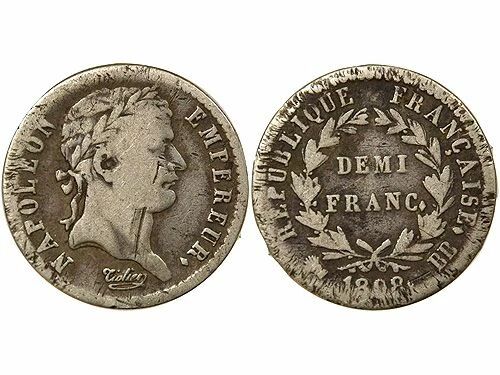 Pièce France Napoléon I - 1/2 Franc Argent, République, Tête Laurée - 1808 BB Strasbourg