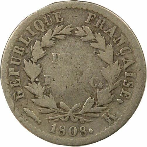 Home > French coins (470 à 2002) > Modern Currencies (1789 to 2002) > 50 Centimes / 1/2 Franc > France Napoleon I - 1/2 Silver Franc, Laureate Head, Republic - 1808 K Bordeaux