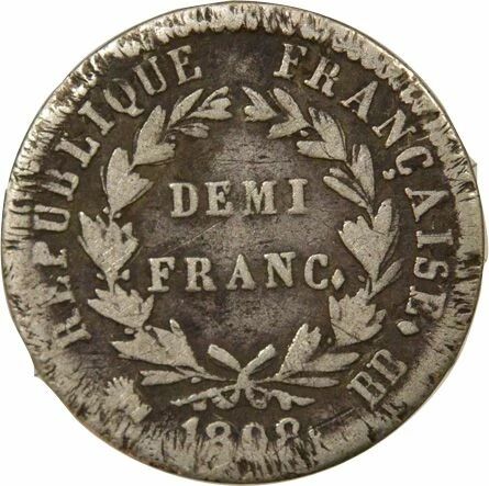 Coin France Napoleon I - 1/2 Silver Franc, Republic, Laureate Head - 1808 BB Strasbourg