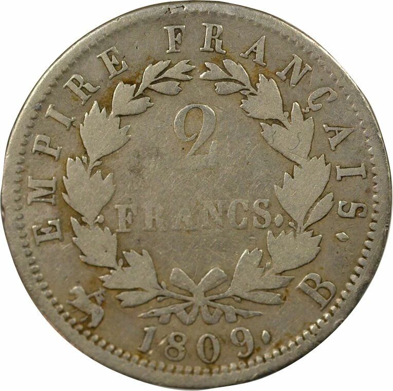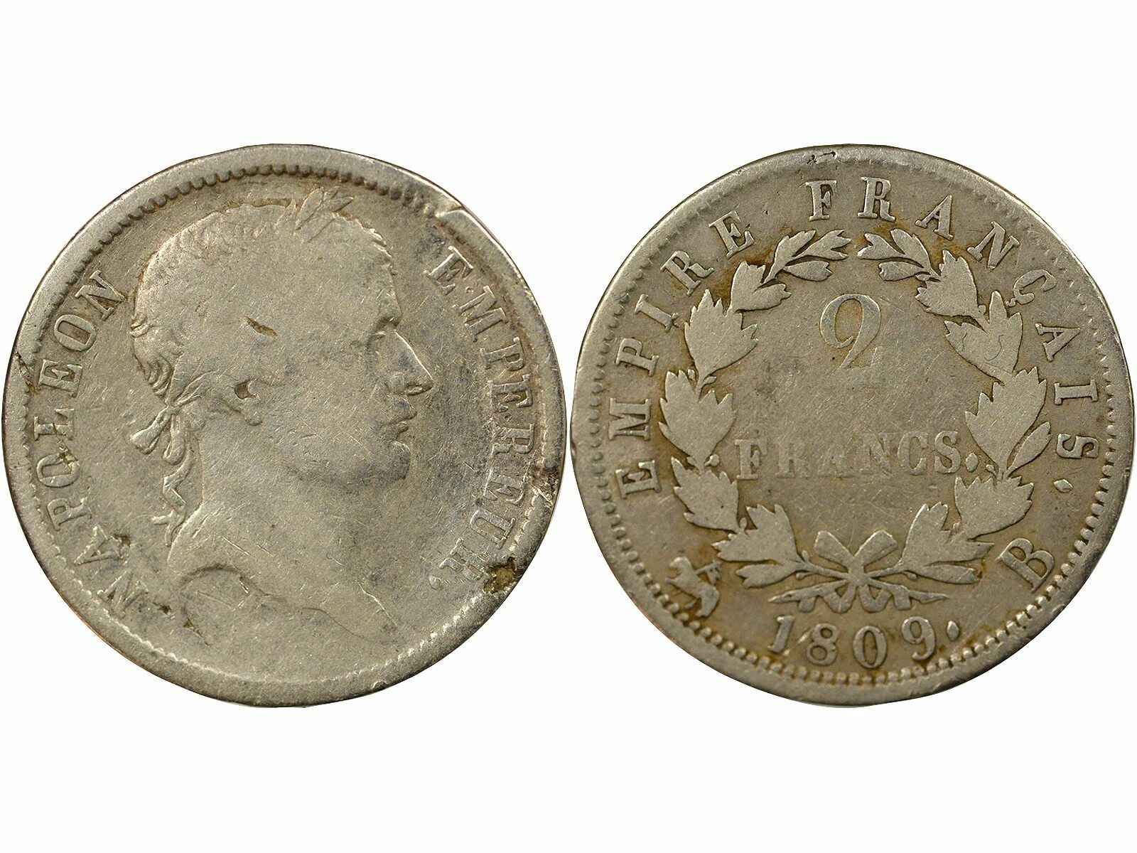 Coin France Napoleon I - 2 Silver Francs, Empire - 1809 B Rouen