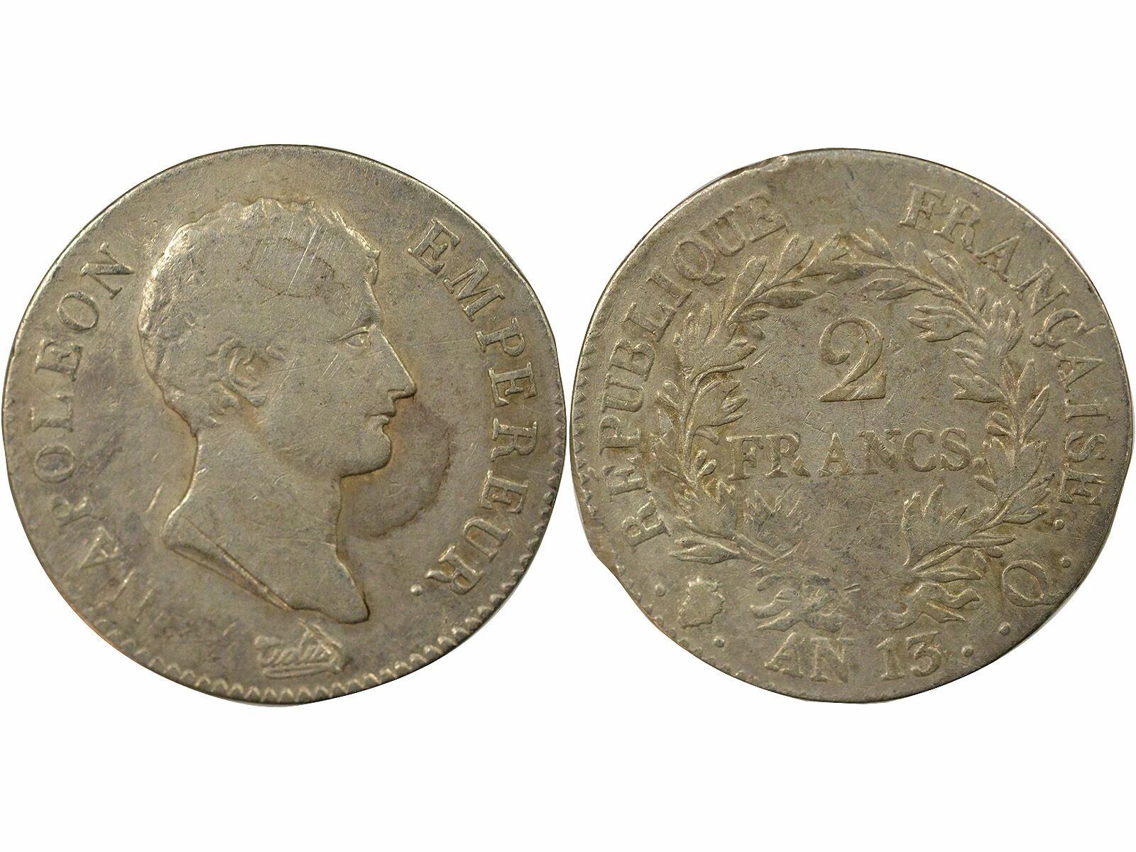 Coin France Napoleon I - 2 Silver Francs, Revolutionary Cal. - Year 13 Q Perpignan