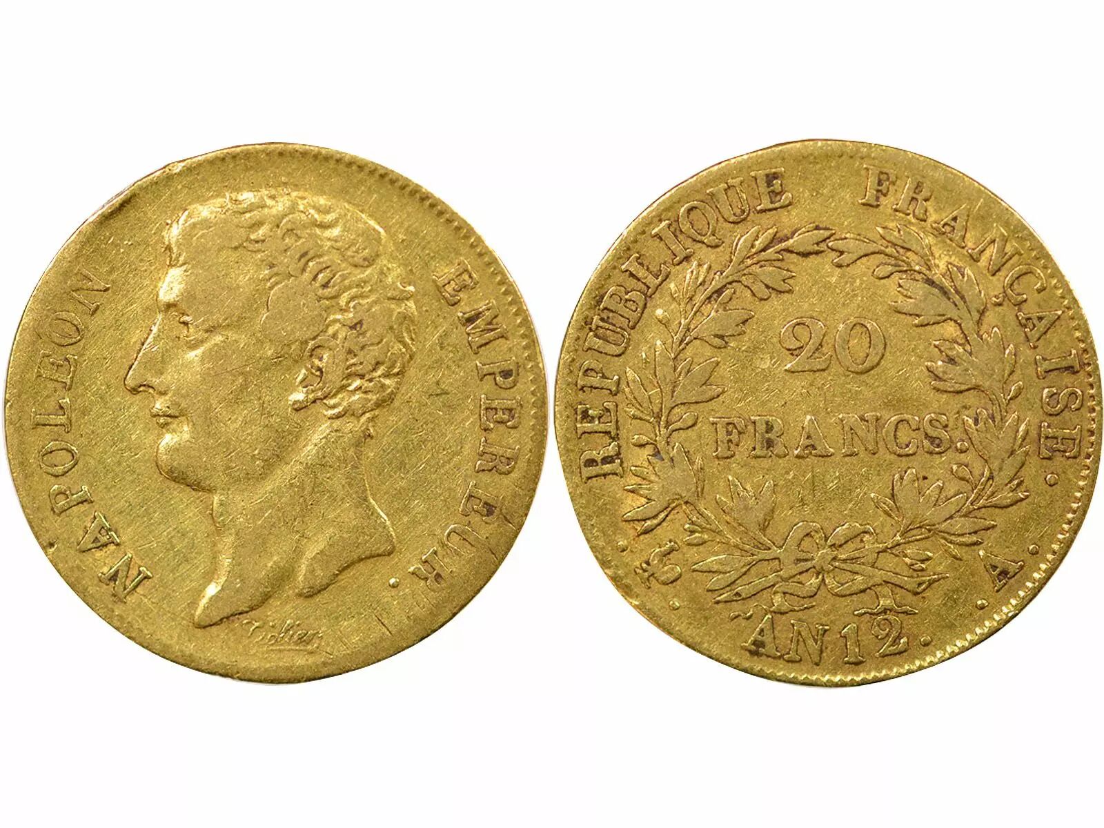 Pièce France Napoléon I - 20 Francs Or, Buste intermédiaire - An 12 A Paris