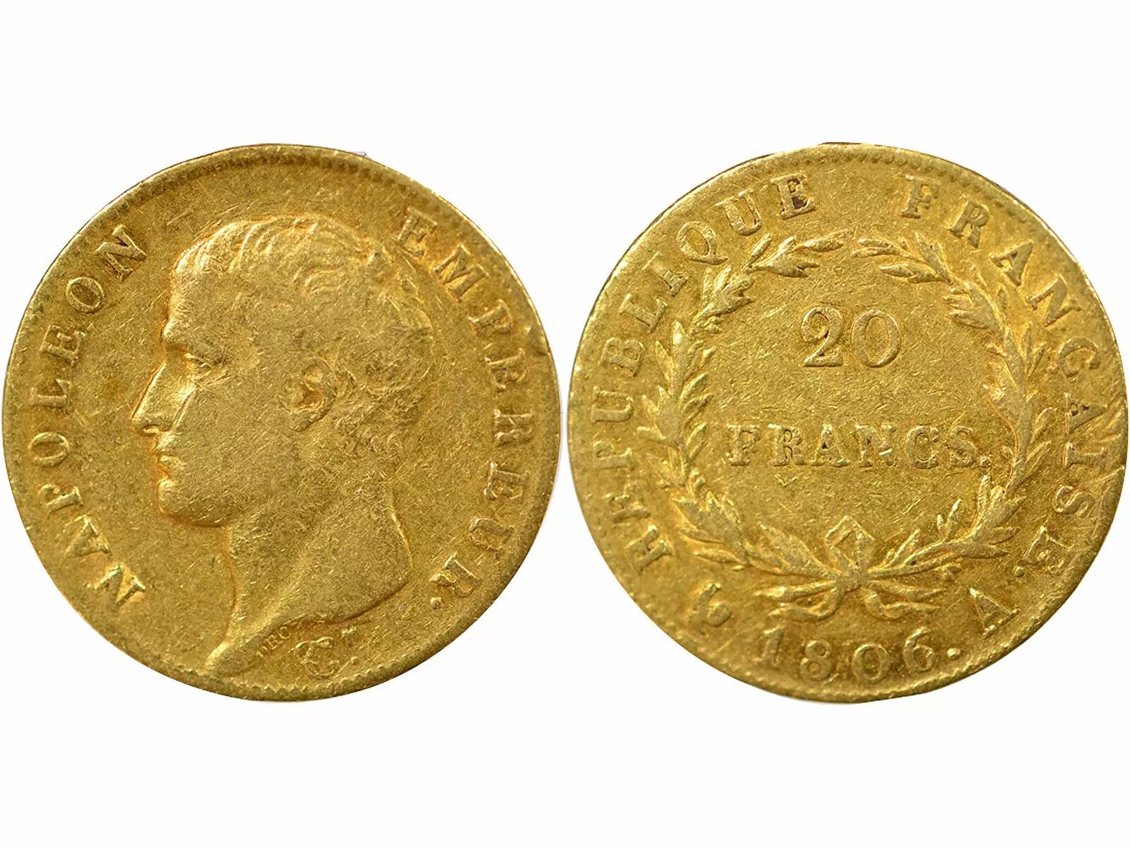 Accueil > Archivage > archivage-Monnaies françaises (470 à 2002) > France Napoléon I - 20 Francs Or, Tête nue, Cal. Grég. - 1806 A Paris