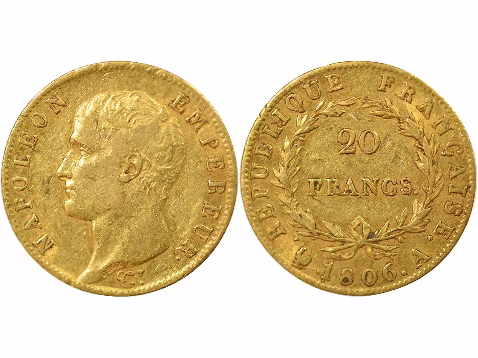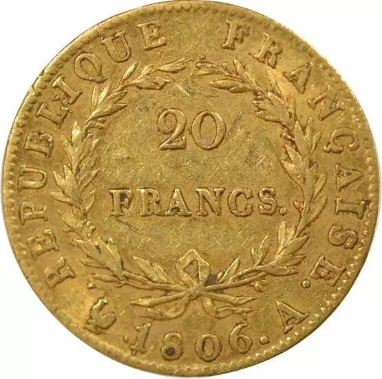 Accueil > Archivage > archivage-Monnaies françaises (470 à 2002) > France Napoléon I - 20 Francs Or, Tête nue, Cal. Grég. - 1806 A Paris