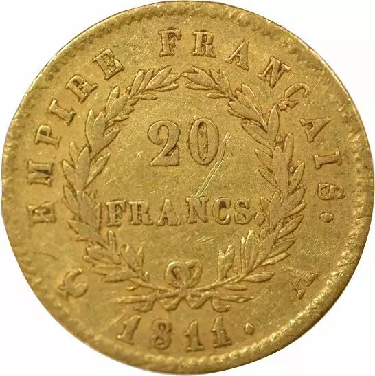 Home > > France Napoleon I - 20 Gold Francs, Empire - 1811 A Paris