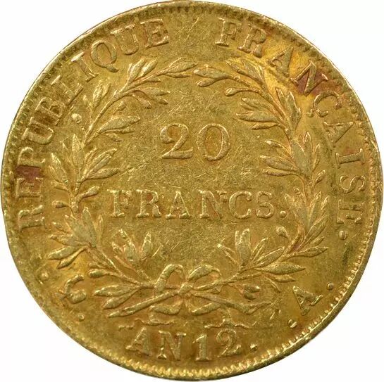 Home > French coins (470 à 2002) > Modern Currencies (1789 to 2002) > 20 Francs > France Napoleon I - 20 Gold Francs, Intermediate Bust - Year 12 A Paris