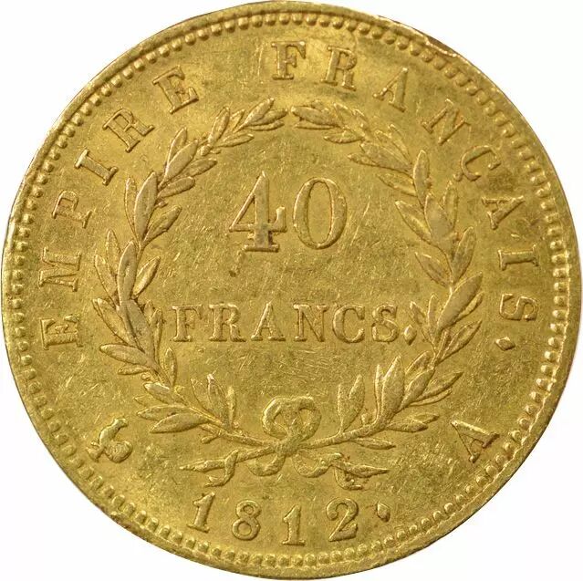 Home > French coins (470 à 2002) > Modern Currencies (1789 to 2002) > 40 Francs > France Napoleon I - 40 Gold Francs, Laureate Head, Empire - 1812 A Paris