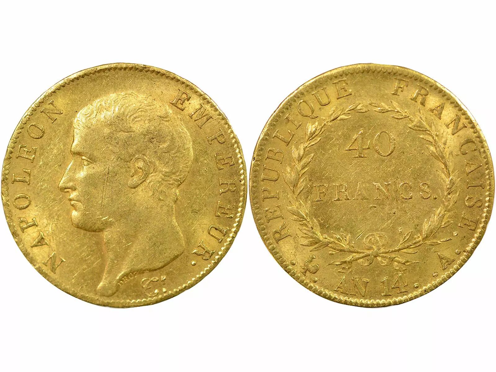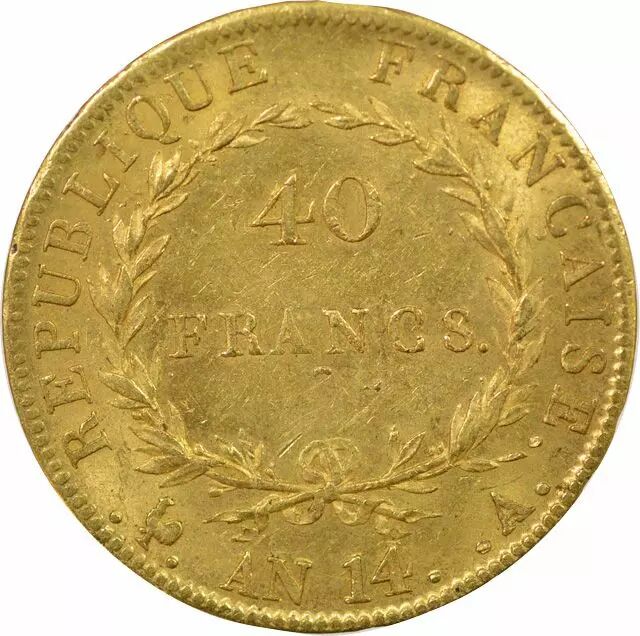 Coin France Napoleon I - 40 Gold Francs, Rev. Calendar - Year 14 A Paris