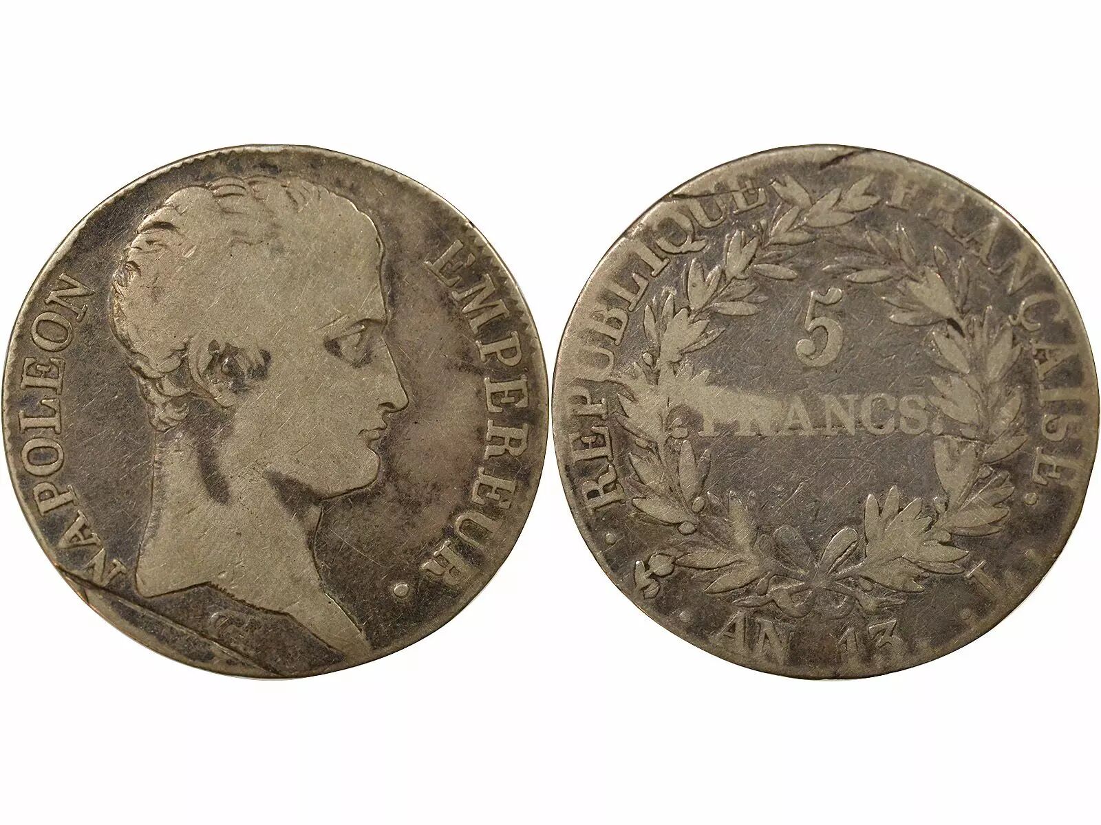 Pièce France Napoléon I - 5 Francs Argent, Cal. Révolutionnaire - An 13 L Bayonne
