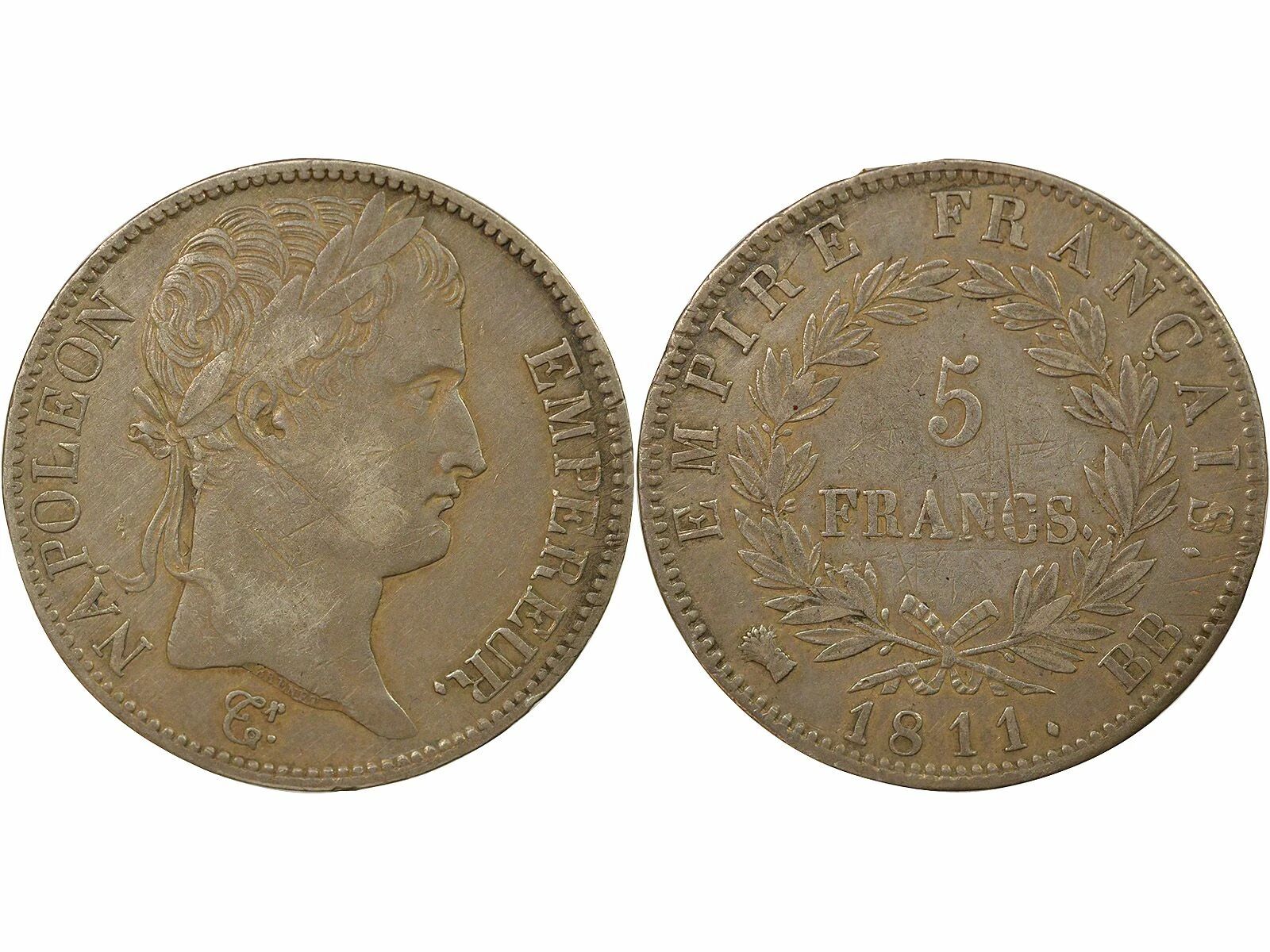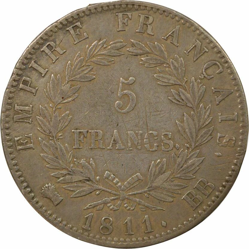 Pièce France Napoléon I - 5 Francs Argent, Empire - 1811 IBB Strasbourg