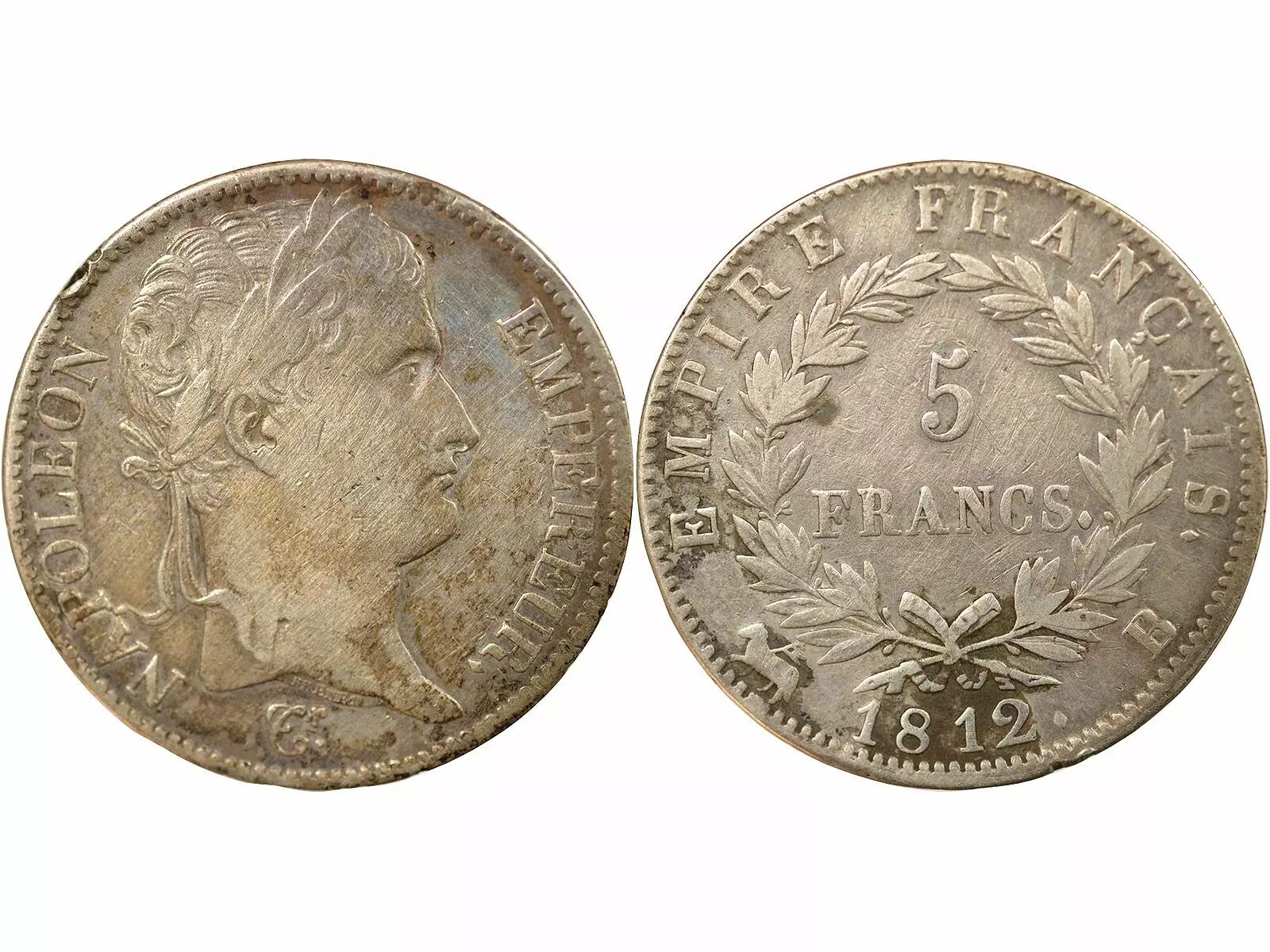 Pièce France Napoléon I - 5 Francs Argent, Empire - 1812 B Rouen