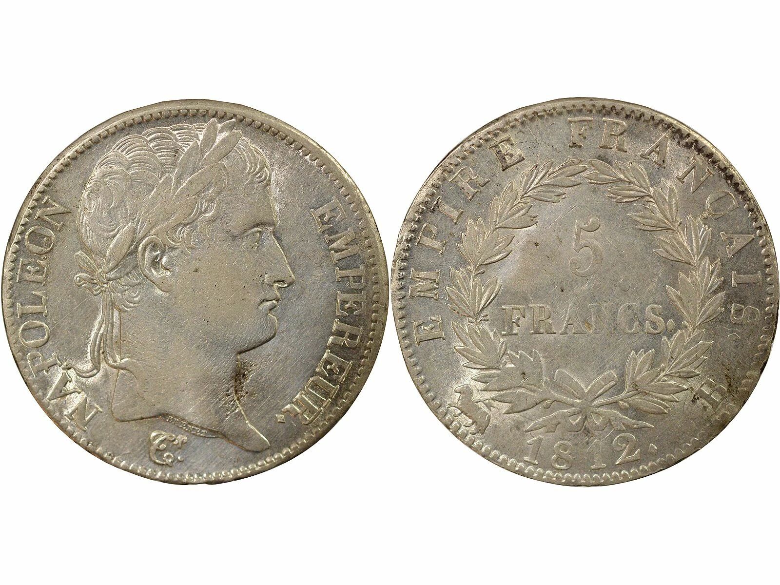 Pièce France Napoléon I - 5 Francs Argent, Empire - 1812 B Rouen