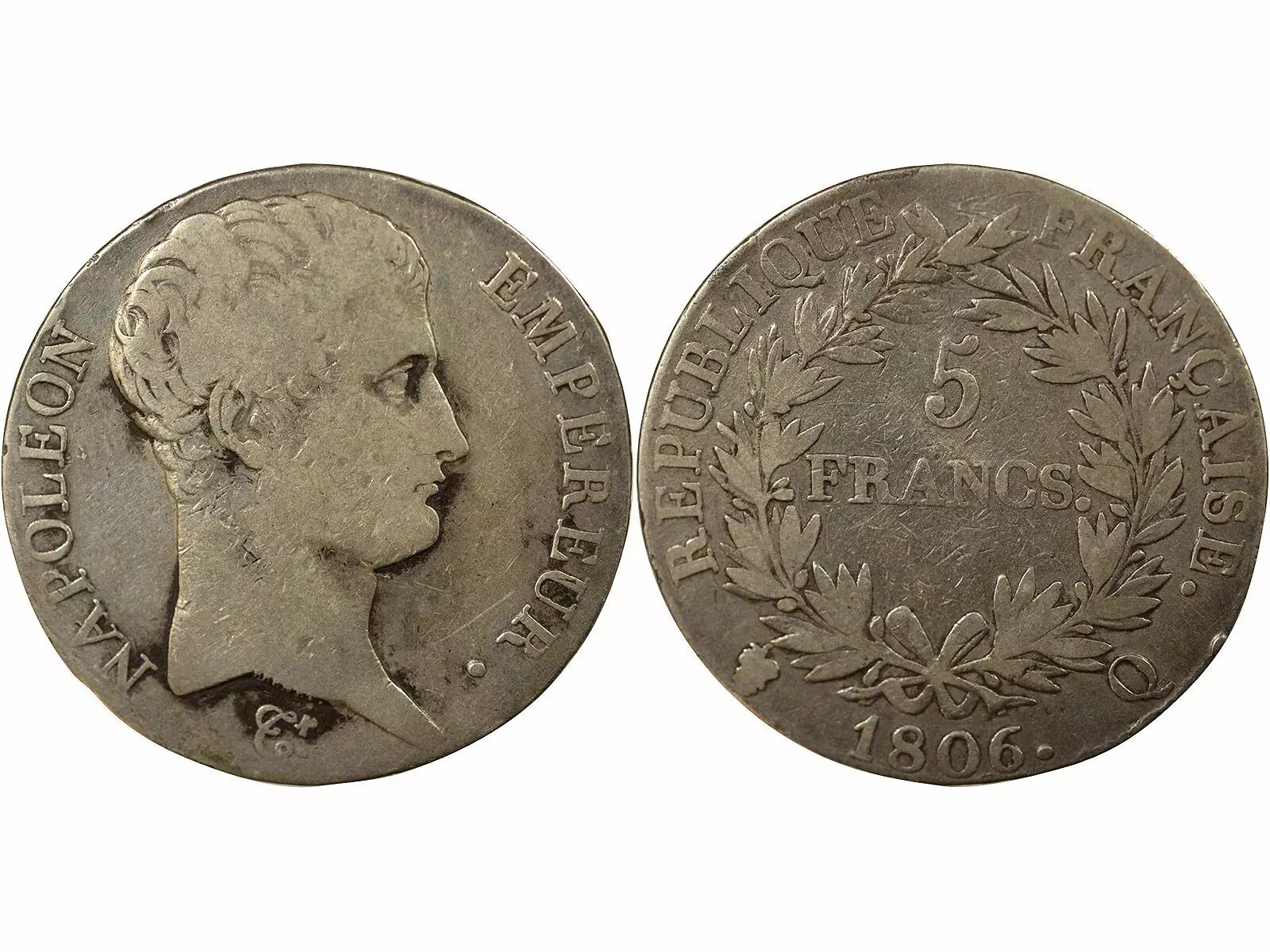 Home > French coins (470 à 2002) > Modern Currencies (1789 to 2002) > 5 Francs > France Napoleon I - 5 Silver Francs, Bare Head Gregorian Cal. - 1806 Q Perpignan
