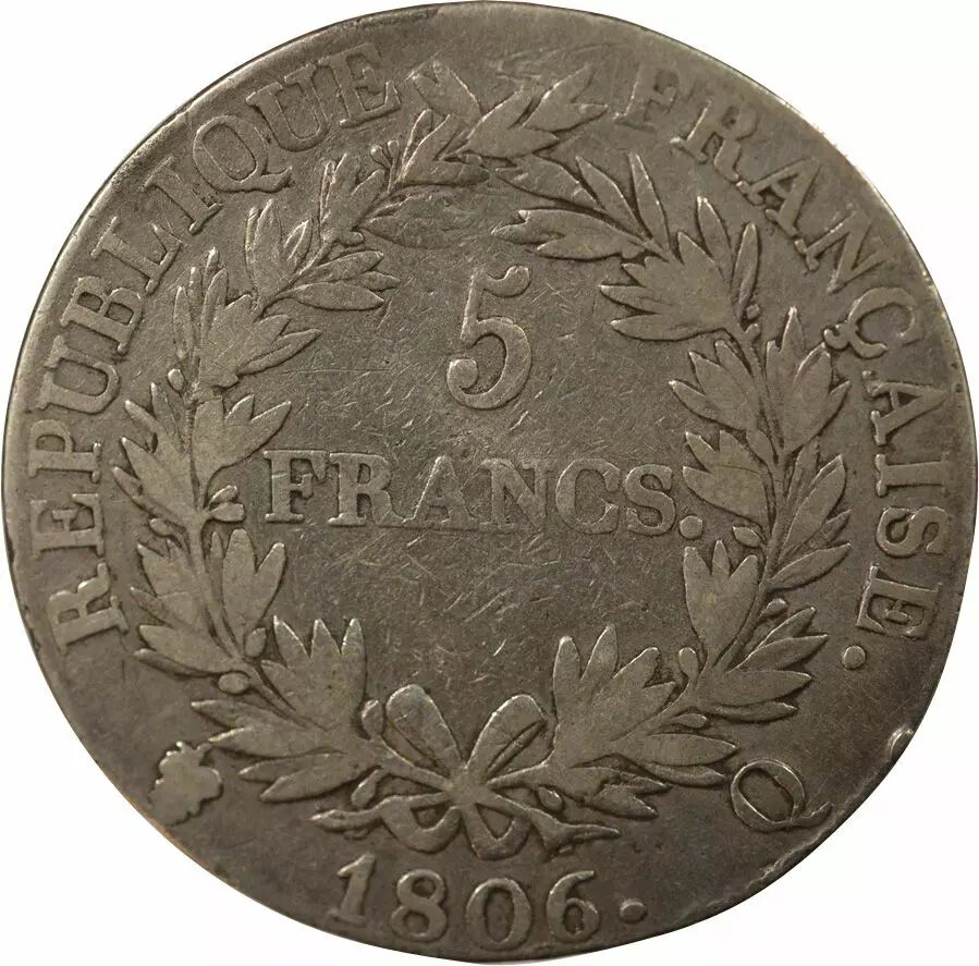 Coin France Napoleon I - 5 Silver Francs, Bare Head Gregorian Cal. - 1806 Q Perpignan