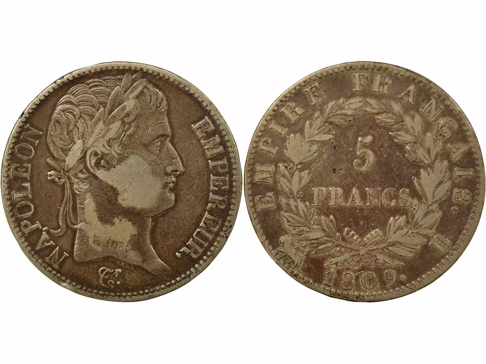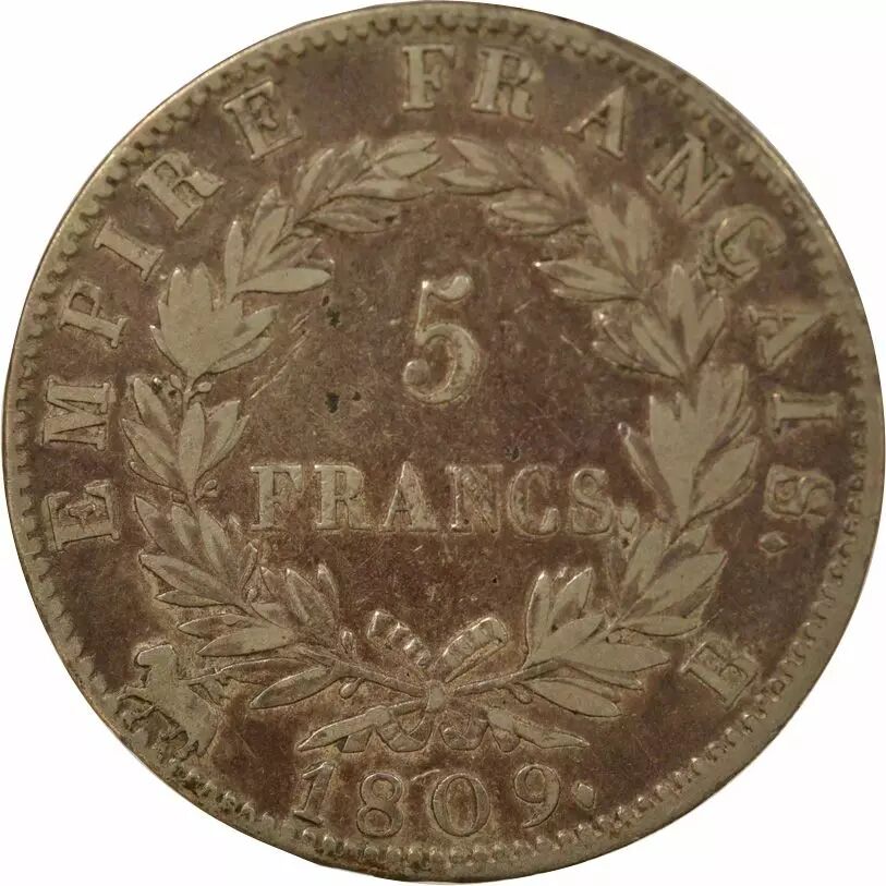 Coin France Napoleon I - 5 Silver Francs, Empire - 1809 B Rouen