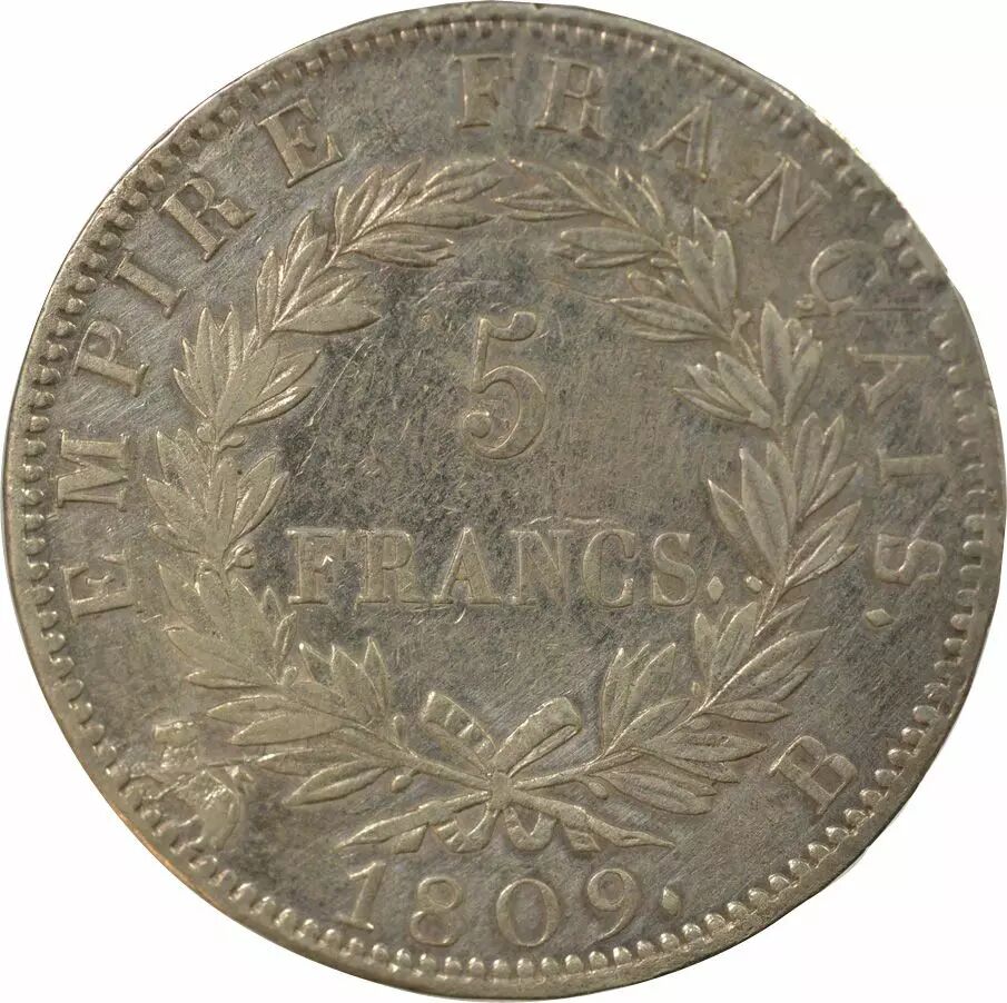 Coin France Napoleon I - 5 Silver Francs, Empire - 1809 B Rouen