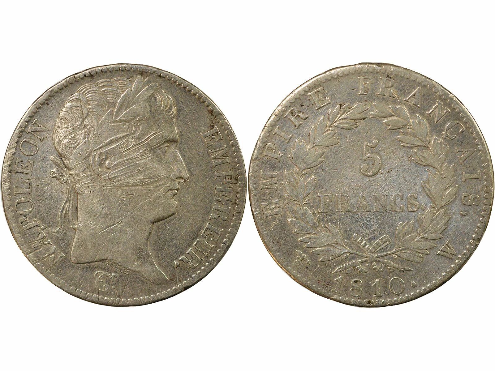Coin France Napoleon I - 5 Silver Francs, Empire - 1810 W Lille