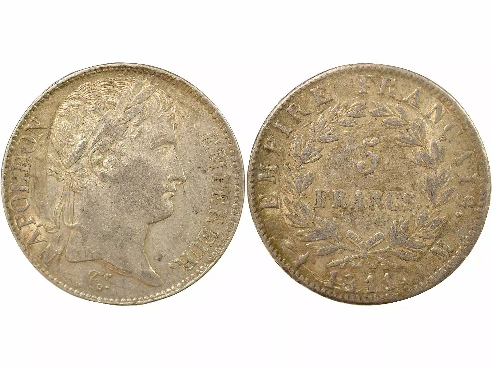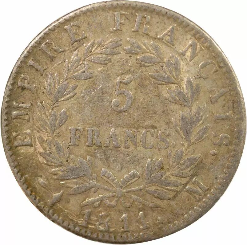 Coin France Napoleon I - 5 Silver Francs, Empire - 1811 M Toulouse