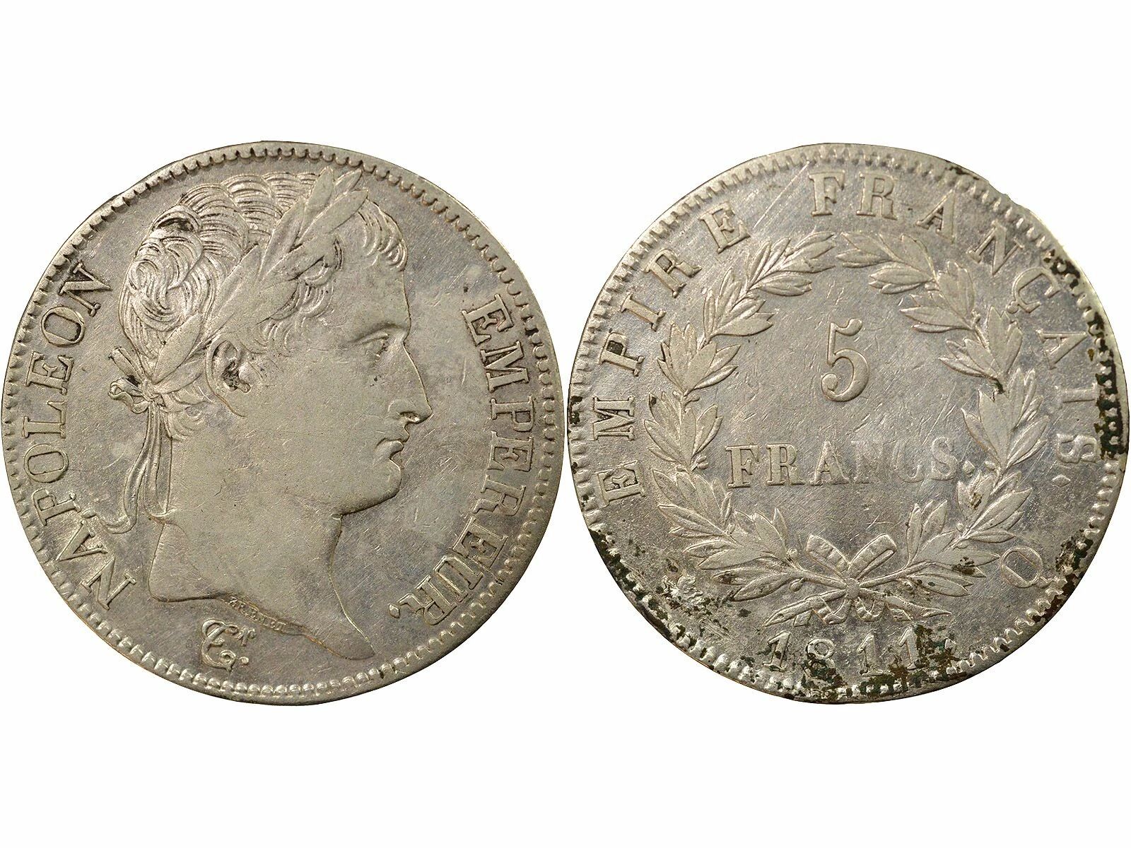 Coin France Napoleon I - 5 Silver Francs, Empire - 1811 Q Perpignan