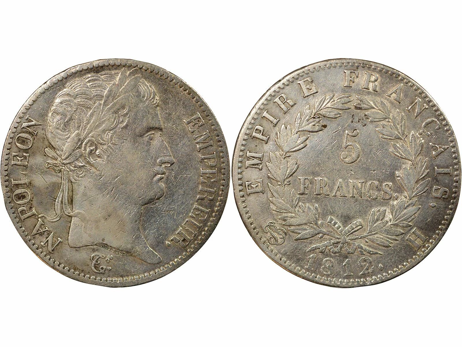 Coin France Napoleon I - 5 Silver Francs, Empire - 1812 H La Rochelle
