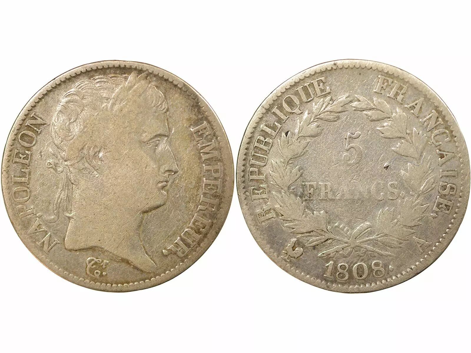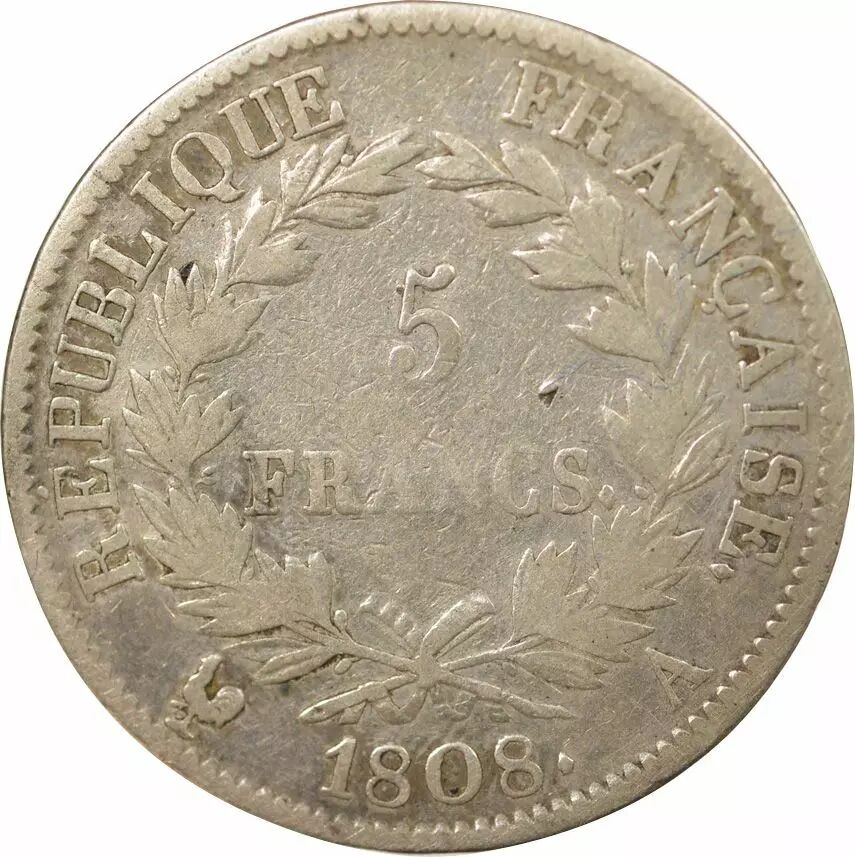 Coin France Napoleon I - 5 Silver Francs, Laureate Head, Republic - 1808 A Paris